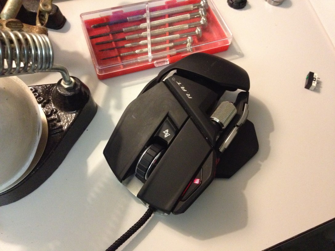 症状としては、左クリックがたまにダブルクリックになってしまうというもの。マウスの故障パターンとしては、よくあるものではないでしょうか。原因として、左クリックのスイッチが劣化してチャタリングを起こしている可能性が高いため、交換してみました。